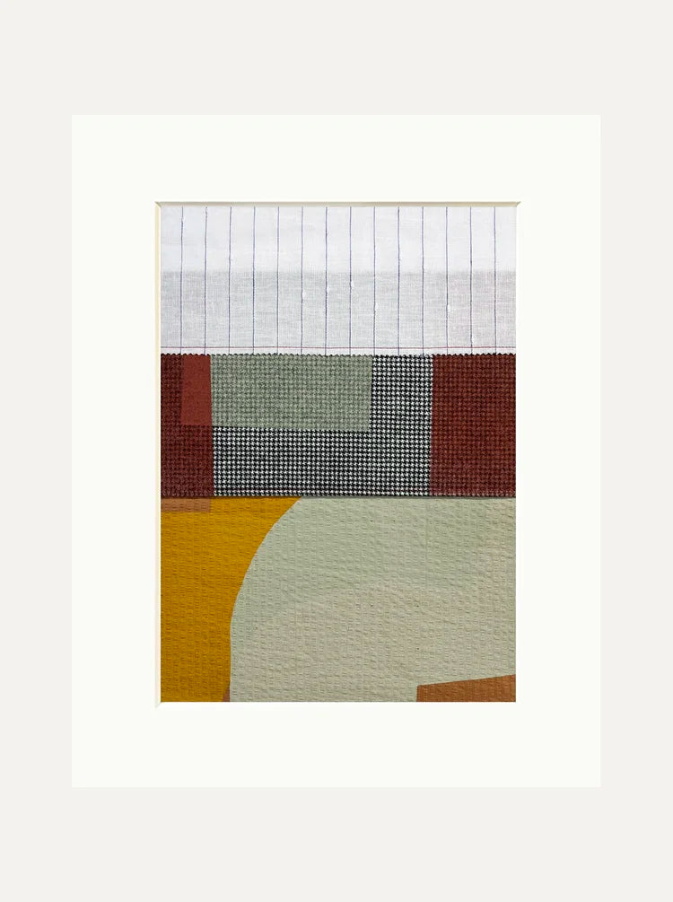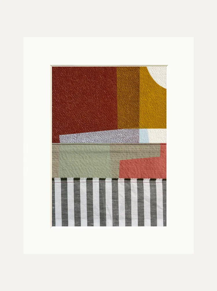 With "a memory of shapes", a "good understanding of composition", but, most importantly, "a love for the fun of the process," Jonathan finds inspiration everywhere: from a nice little village on holiday, to a red beanie, stark against a Finnish snowscape. Regardless of his inspiration, he stresses, he is not the custodian of the work after it has left his studio. "I don't want to put a name to a piece that makes it instantly recognisable," Jonathan explains, laying out the brightly patterned pieces along his workbench — "there's no hidden meaning to my work, I'm just having fun and enjoying it, and the names are a part of that." It is, Jonathan tells us, "your future life with the artwork." Whilst a piece might remind him of Italy, "if it reminds you of Spain, I'm not going to correct you when it's hanging in your home! I want you to love it."